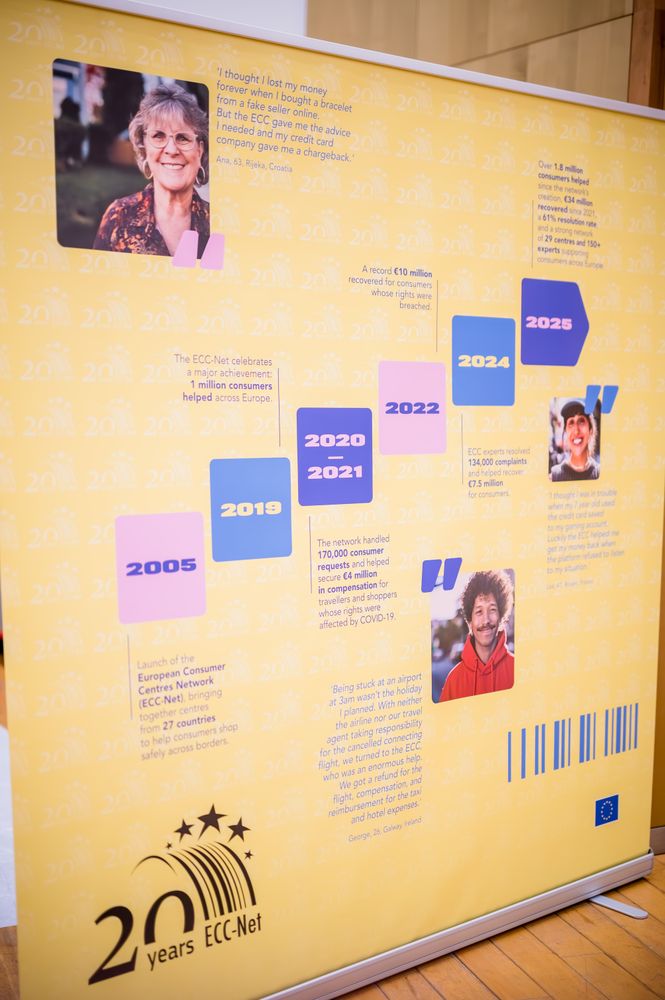 Hova fordulhatunk, ha egy német webshopban kifizetett műszaki termék nem érkezett meg vagy meghibásodott? Ha egy holland szállásközvetítő oldalon foglalt olasz szálláshely nem olyan, mint amilyennek hirdették? Ha egy francia légitársaság elvesztette a poggyászunkat vagy késett a járat? A 20 éve megalakult Európai Fogyasztói Központok Hálózata (ECC-Net) évente összesen 130.000 hasonló határon átnyúló ügyben nyújt segítséget az európai fogyasztóknak. A magyar Európai Fogyasztói Központ ezen időszak alatt 620 millió forintot szerzett vissza a fogyasztók számára.