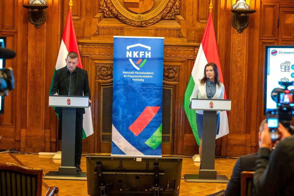 A hazai fogyasztóvédelmet erősítő intézkedésekről Gerlaki Bence adóügyekért, fogyasztóvédelemért és kereskedelemért felelős államtitkár, Csákiné dr. Gyuris Krisztina fogyasztóvédelemért és kereskedelemért felelős helyettes államtitkár, valamint dr. Német-Weingartner Lilla, az NKFH elnöke számolt be.