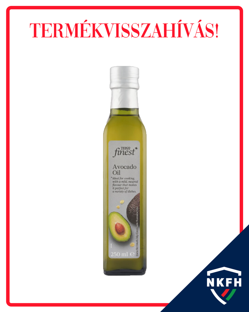 A TESCO-GLOBAL Áruházak Zrt. az általuk forgalmazott Tesco Finest Avokádó olaj 250 ml megnevezésű termék fogyasztói visszahívását kezdeményezte a termék határérték feletti glicidol tartalma miatt.