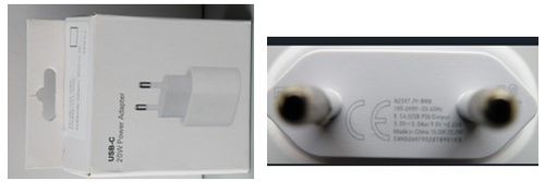 terméken márkajelölés nélküli, A2347 JY-888 termékazonosító jelölésű, a csomagolódobozon „20W Power Adapter” feliratú, a csomagolódobozra ragasztott címkén 16710 hivatkozási számú akkumulátortöltő
