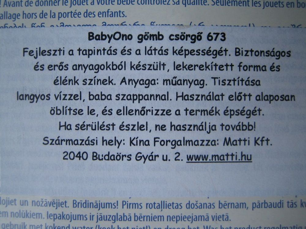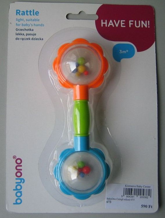 babyono márkajelzésű, Cat No 673 azonosító jelölésű, 5904341205382 vonalkóddal ellátott gömb csörgő